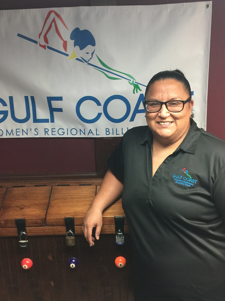 Natalie Rocha dominated a talented field of women players at the fourth stop on the Gulf Coast Women’s Regional Billiards Tour, held at Big Tyme Billiards in Spring, Texas. Rocha plowed through an all-star lineup of players, but was defeated in the first set of the true double elimination finals by Ashley Julian, 7-4. In overtime, Rocha regrouped to capture the final set, and her second victory of the season, 5-2.